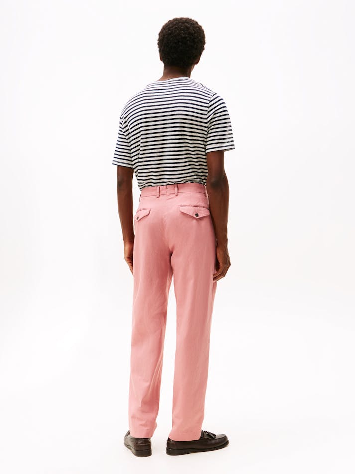 For that lived-in look, turn to our garment-dyed range. The colour is applied after the clothes have been constructed for a vintage appearance. These linen-blend trousers have an effortlessly smart feel, with a garment-dyed finish lending vintage-informed authenticity to the aesthetic.