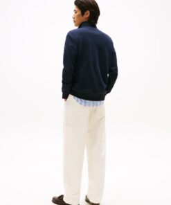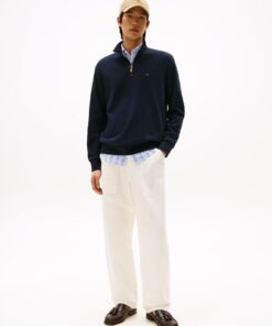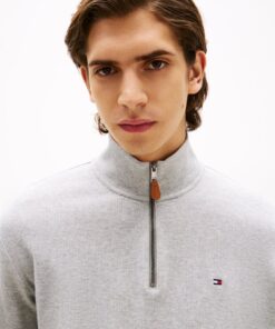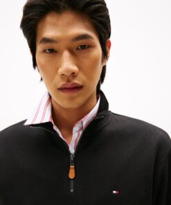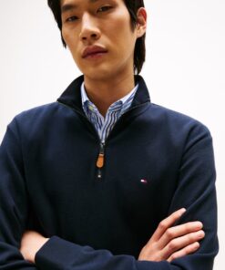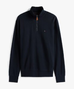 This sweatshirt is crafted from organic cotton for a soft feel, featuring a sleek stand collar and 1/4 zip, finished with understated Tommy Hilfiger branding.