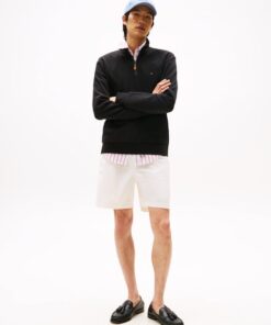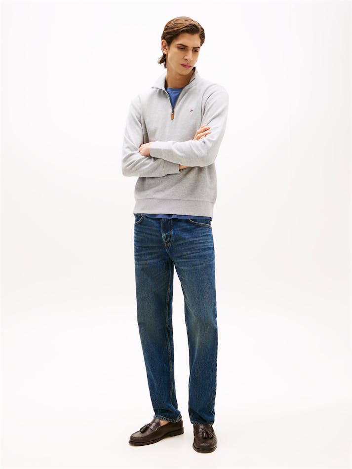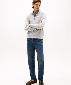 This sweatshirt is crafted from organic cotton for a soft feel, featuring a sleek stand collar and 1/4 zip, finished with understated Tommy Hilfiger branding.