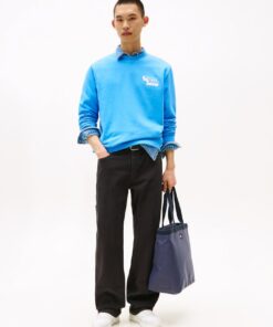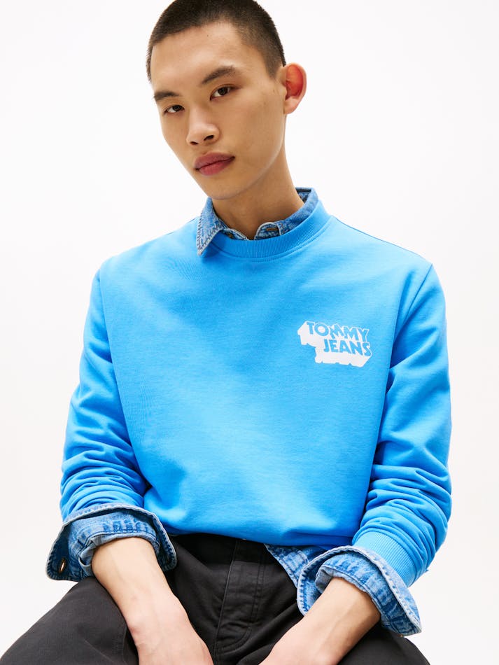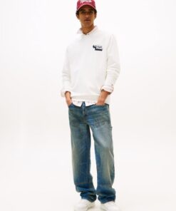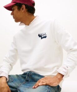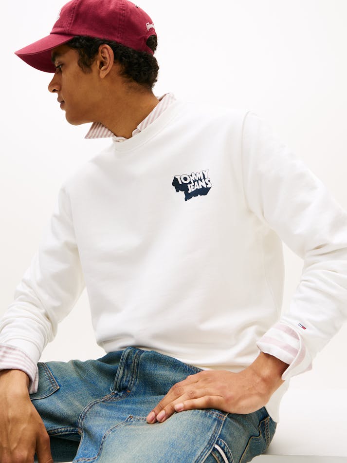 Throw on this crew-neck sweatshirt when it’s time to relax, and rock the Tommy Jeans stack logo and classic flag embroidery.