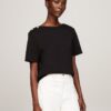 This tee goes all in for a nautical-inspired look with its flattering boat neck and gold-tone shoulder button detailing.