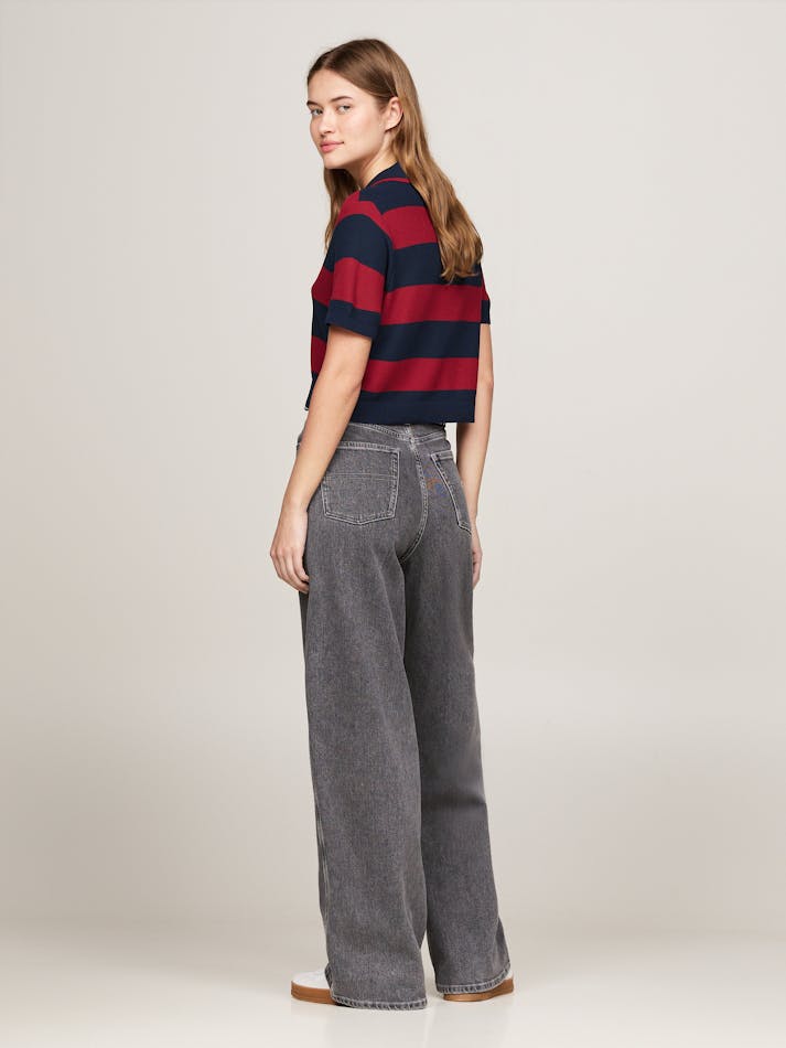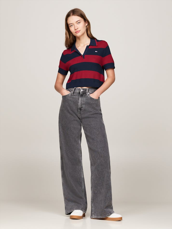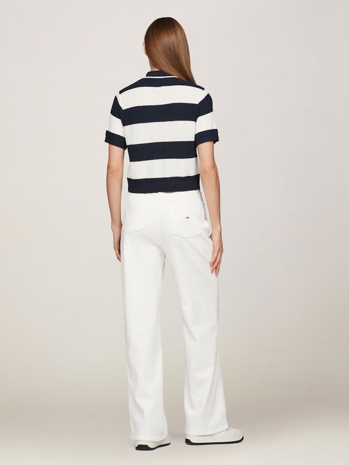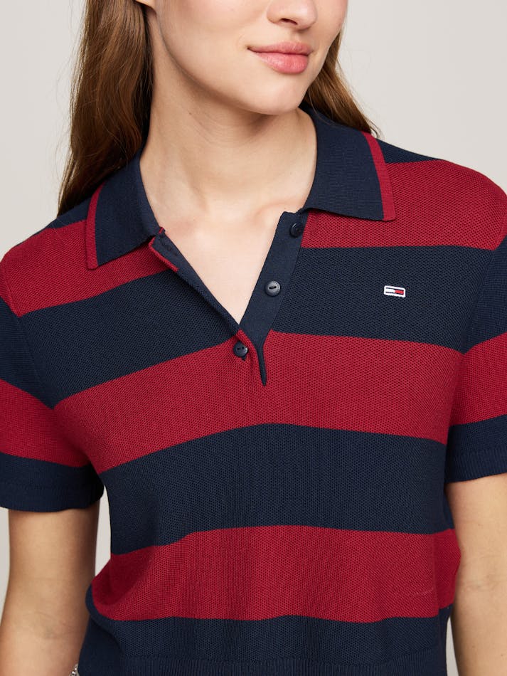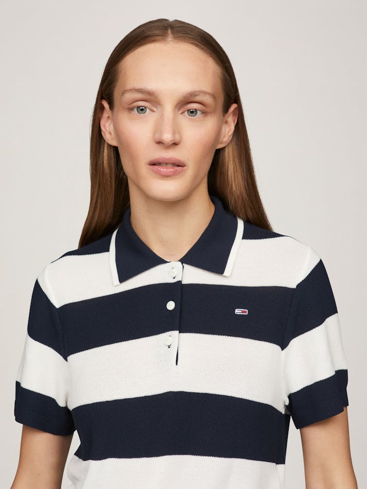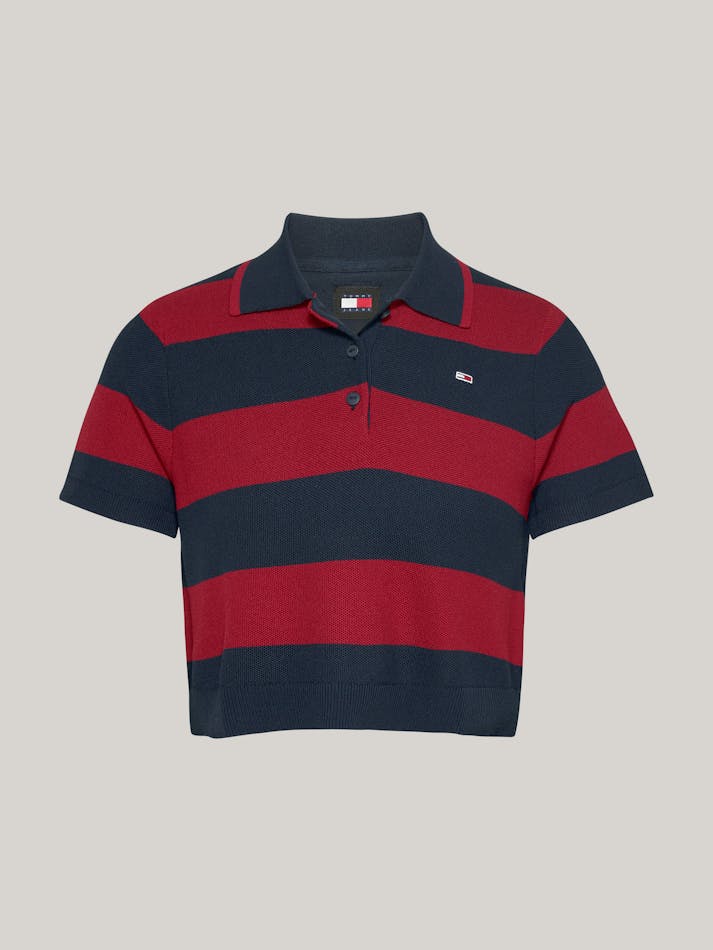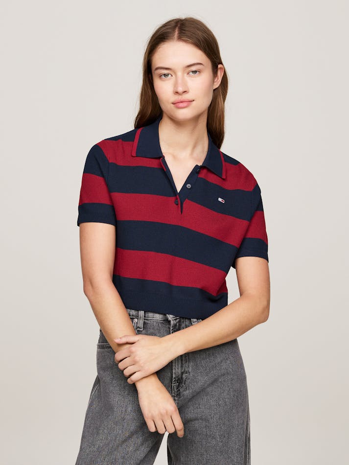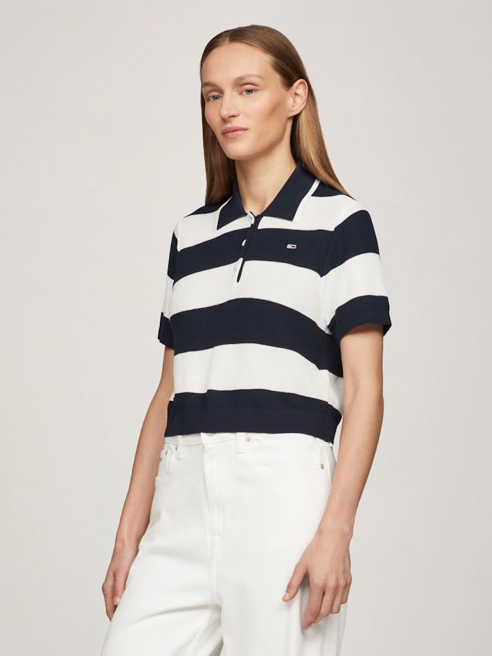 This polo shirt combines a traditional tipped collar and stripes with a cropped, boxy fit for a contemporary twist.
