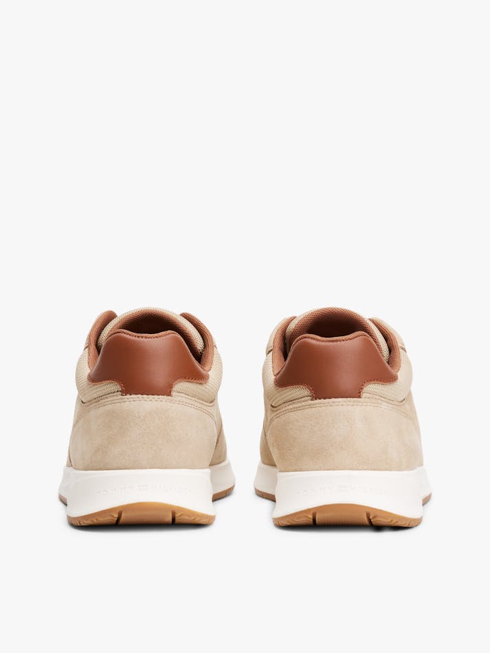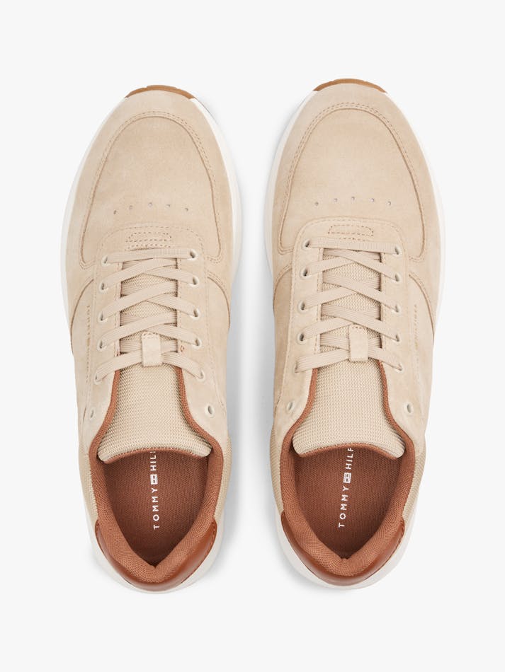 Tactile suede lends these hybrid trainers a premium aesthetic, combining sporty styling with smarter footwear while showcasing a pared-back approach to branding.