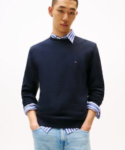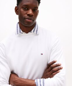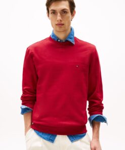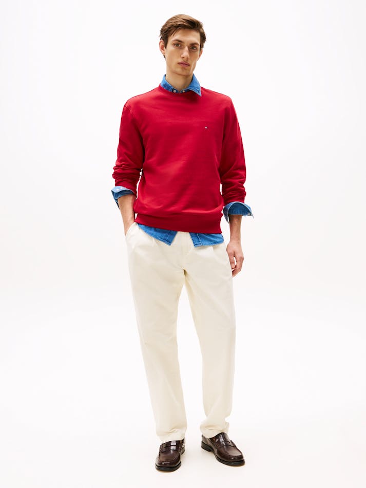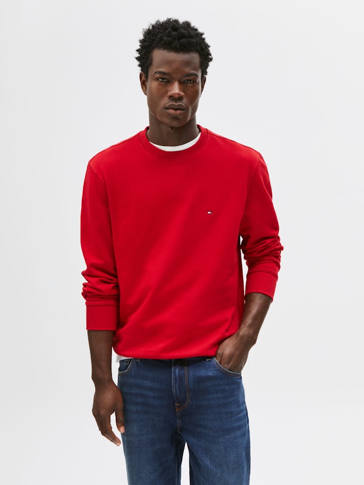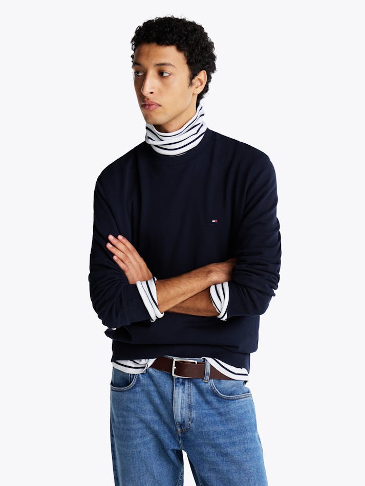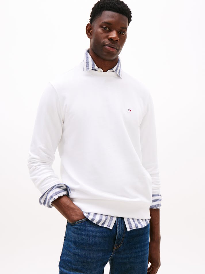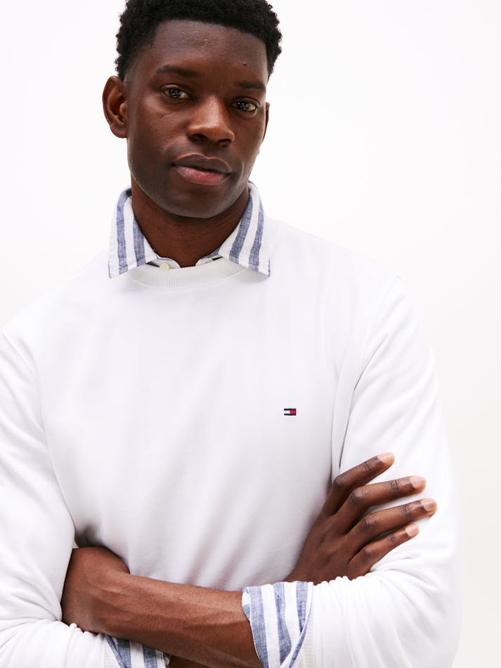 Diversify your transitional wardrobe with this pure cotton terry sweatshirt, featuring a classic crew neck and embroidered branding on the chest.