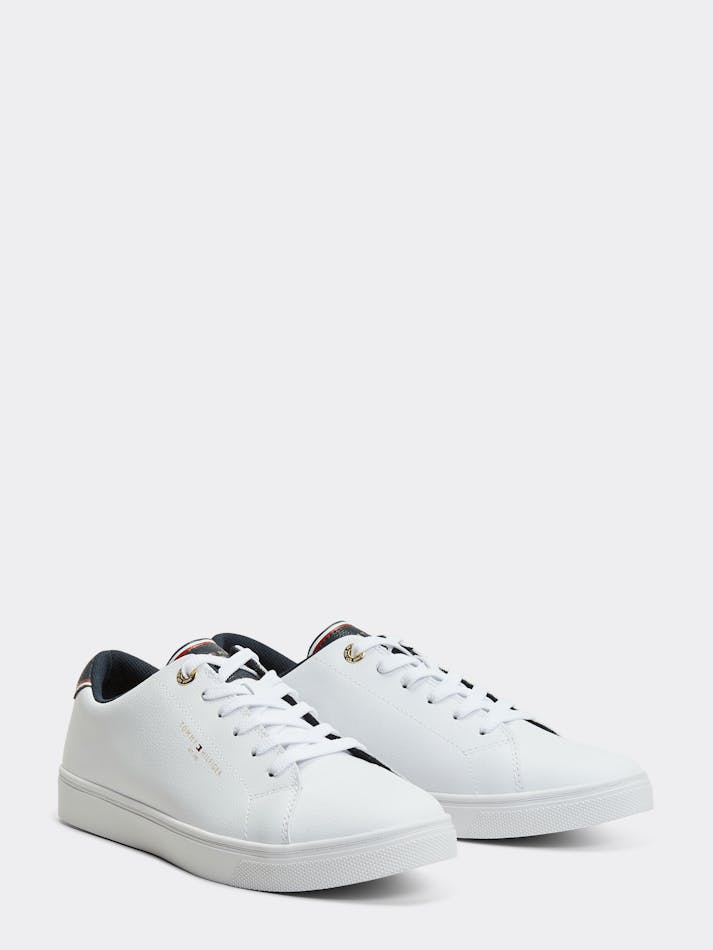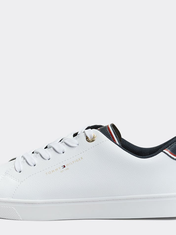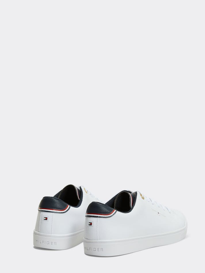 Elevate your shoe game with these leather blend sneakers by Tommy Hilfiger. Features include a signature colour block heel, iconic branding and a classic sneaker silhouette with guaranteed comfort.