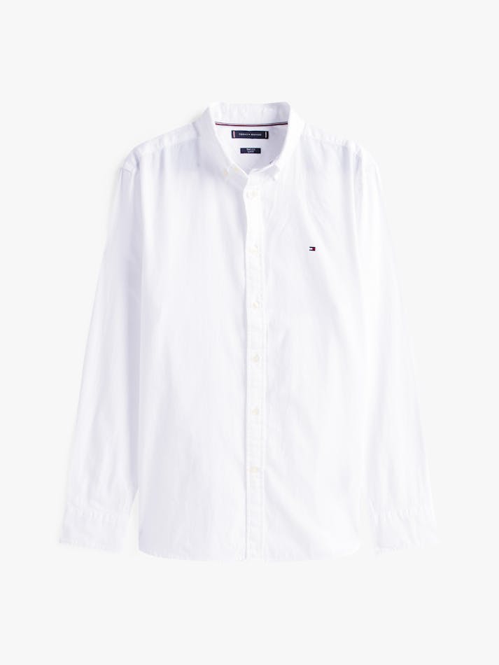 This slim-fit shirt is woven from pure cotton dobby with Tommy Hilfiger Flex technology, providing four-way stretch for maximum comfort.
