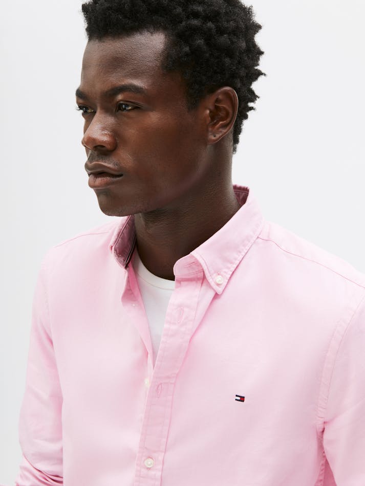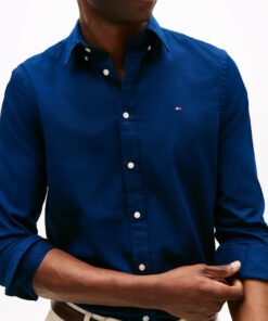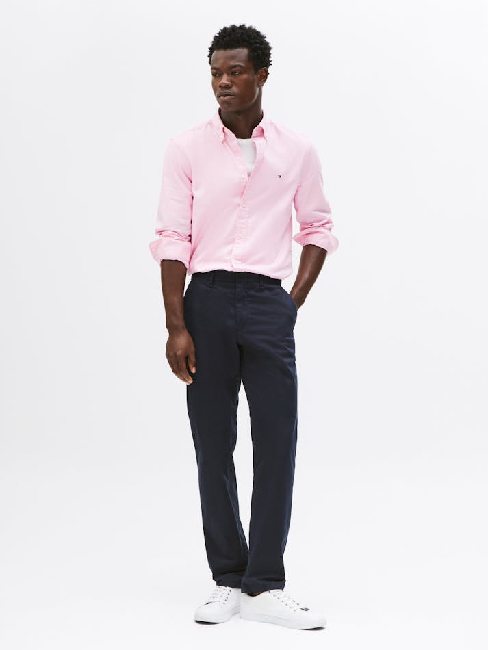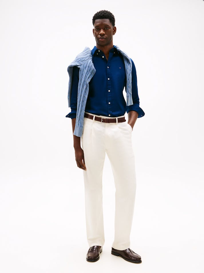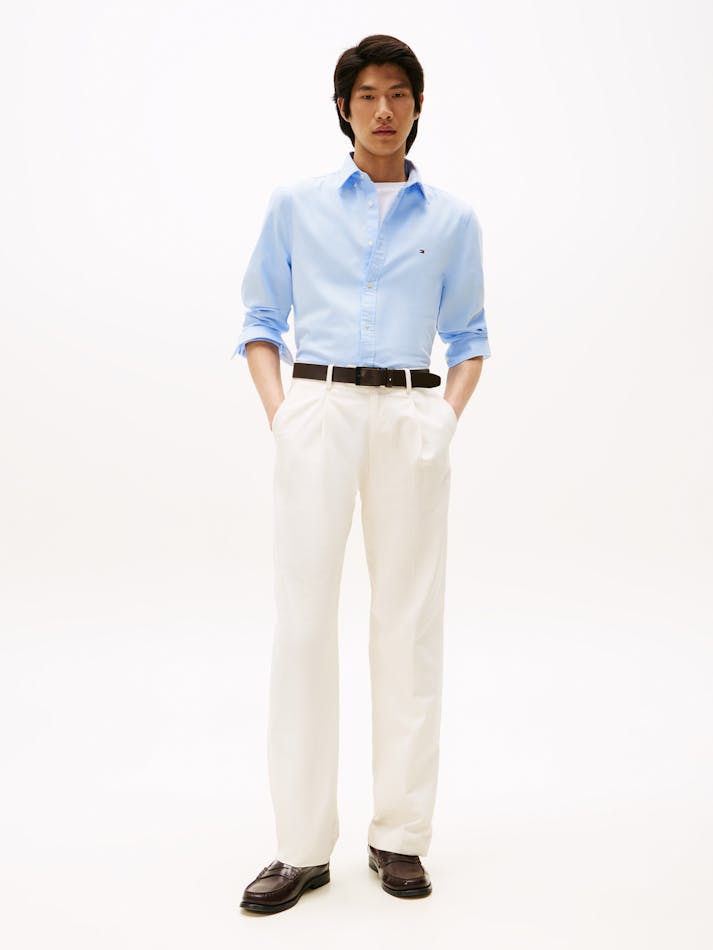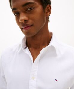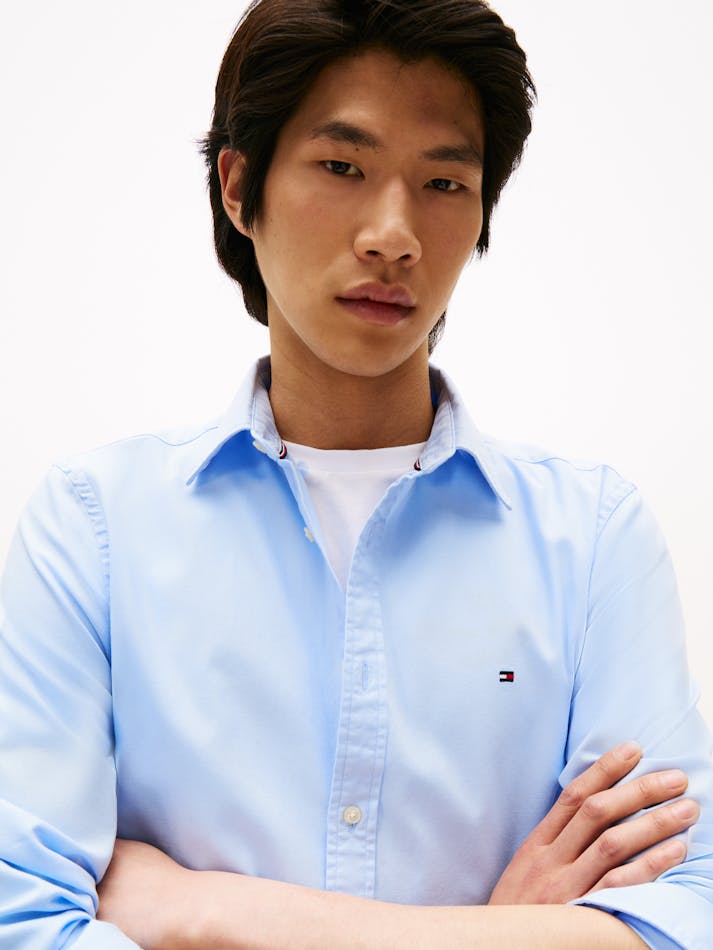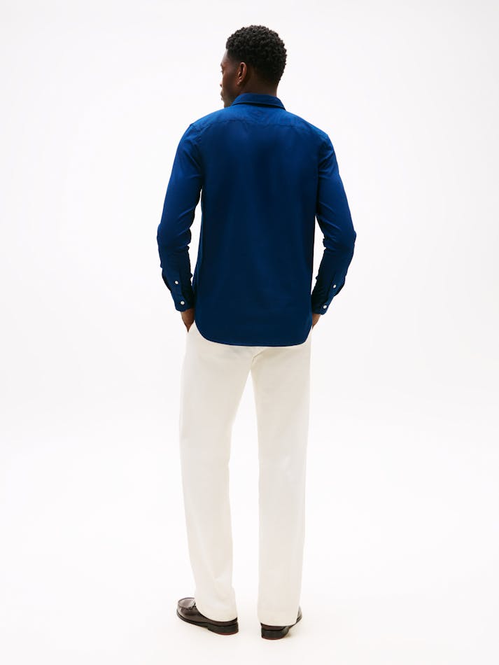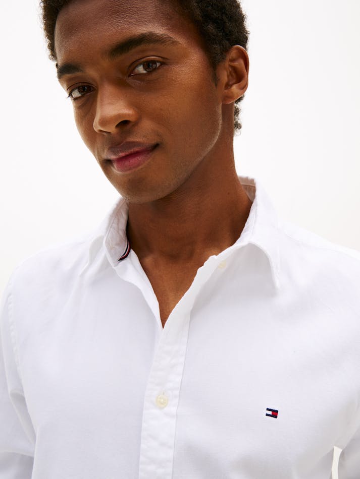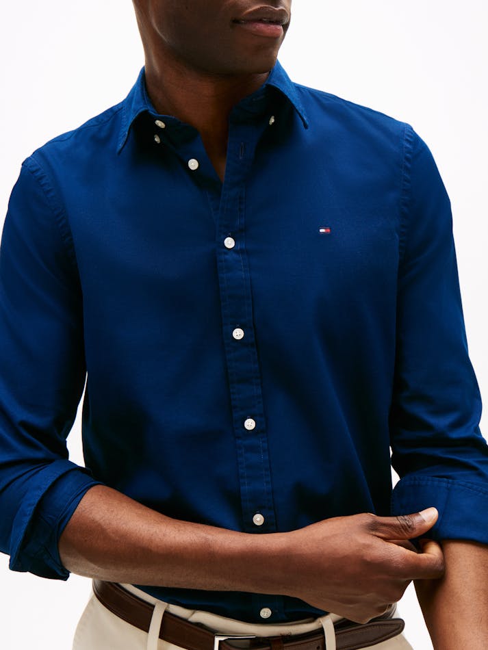 This slim-fit shirt is woven from pure cotton dobby with Tommy Hilfiger Flex technology, providing four-way stretch for maximum comfort.