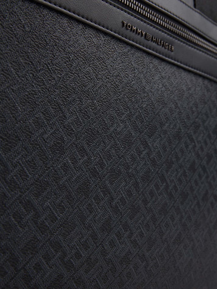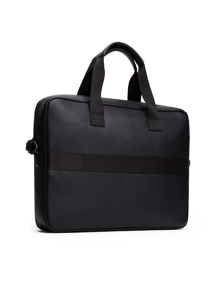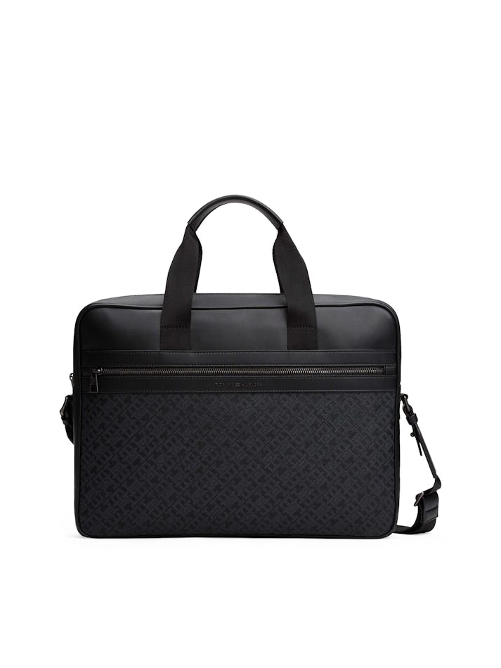 Safely store your laptop in this textured bag, featuring an adjustable webbing strap and two top handles for versatile wear.