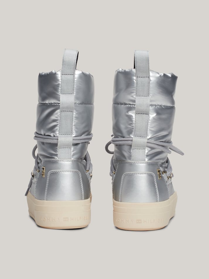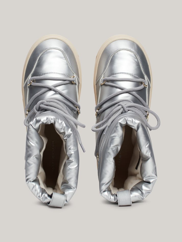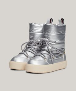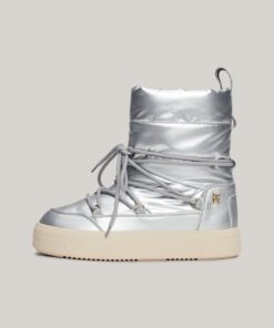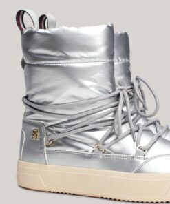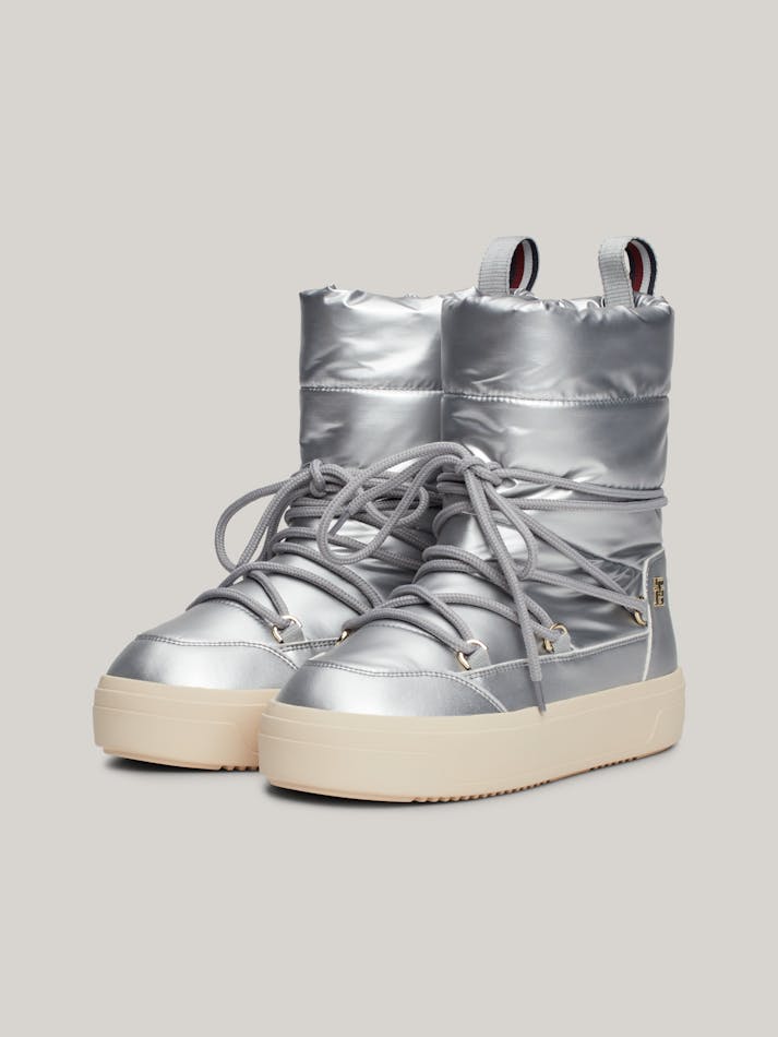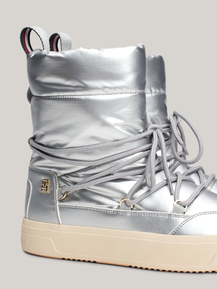 TH MONOGRAM METALLIC LACE-UP SNOW BOOTS
