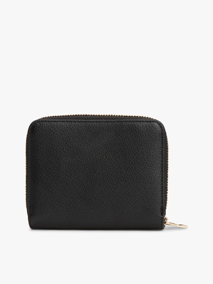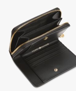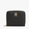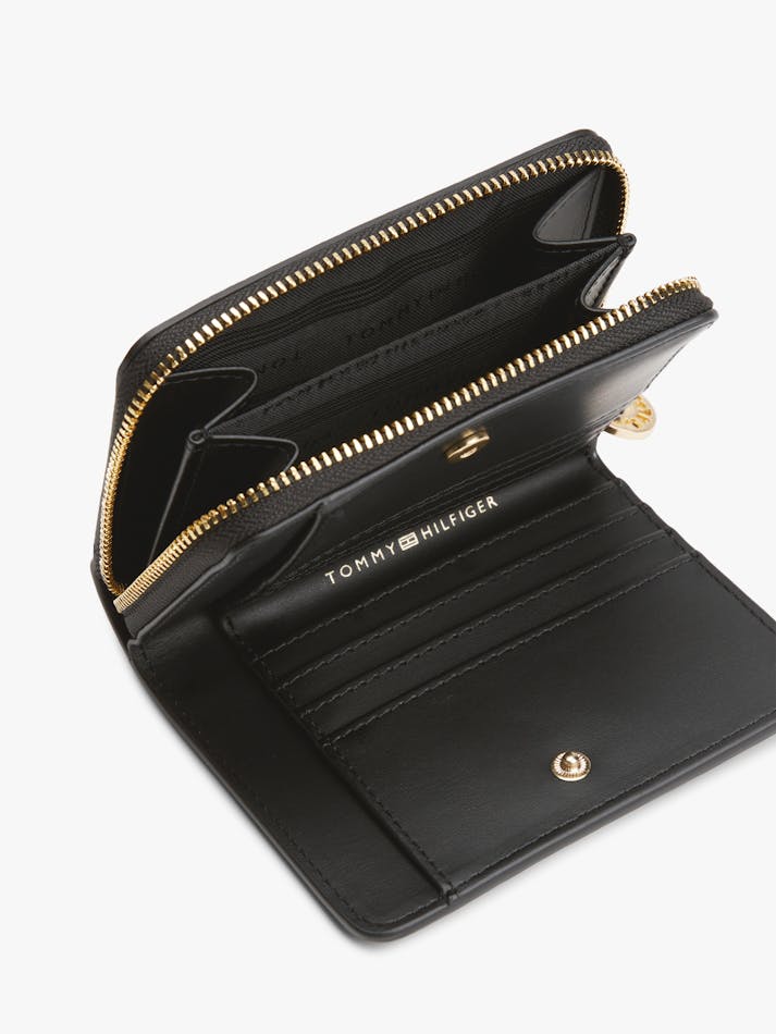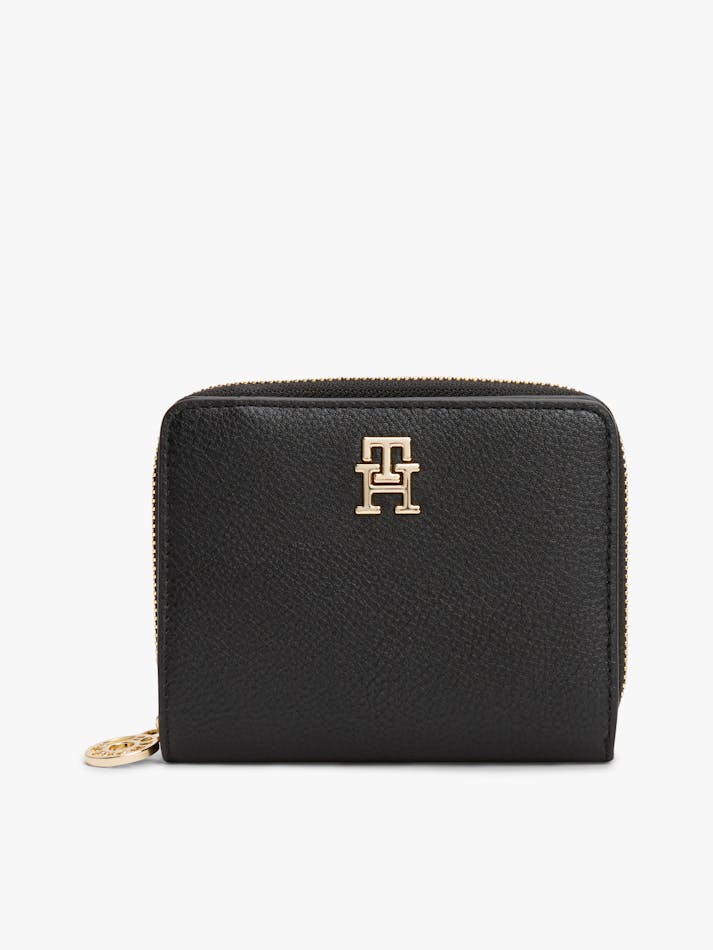 Rounded edges create a softer shape for this stylish wallet, decorated with a polished gold-tone TH monogram plaque on the front.