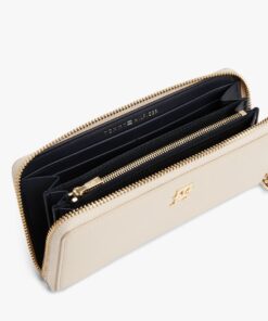 This streamlined zip-around wallet is a stylish and practical choice with a space-efficient interior plus sparkling TH monogram plaque branding.