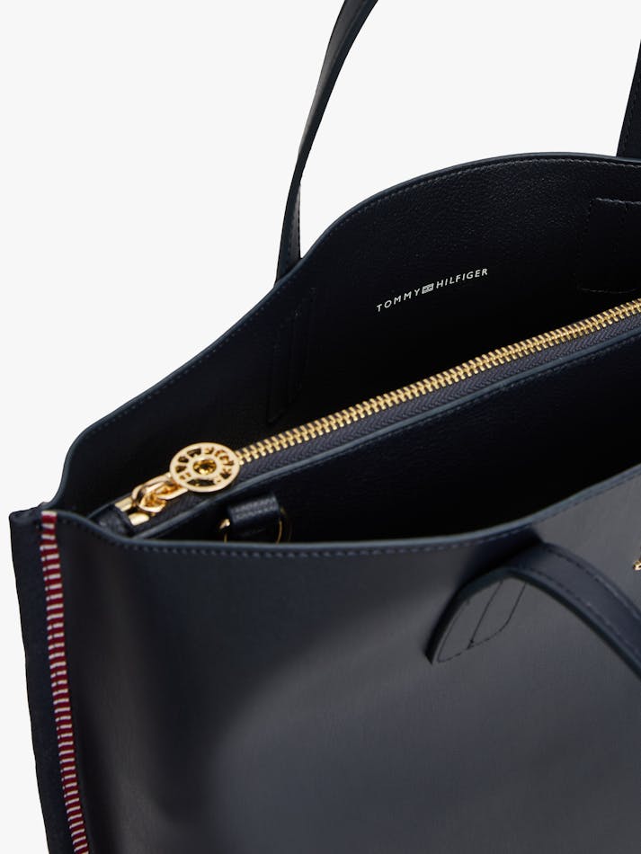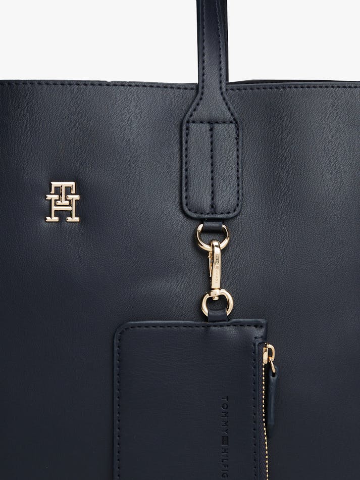 Upgrade your commute with this stylish and practical TH monogram-embellished satchel, offering a spacious interior and a detachable coin purse.