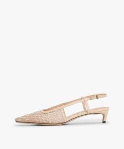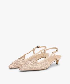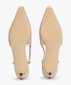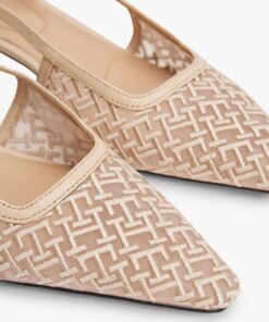 These sophisticated slingbacks feature all-over TH monogram embroidery on the mesh uppers, while kitten heels and pointed toes add feminine touches.