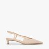 These sophisticated slingbacks feature all-over TH monogram embroidery on the mesh uppers, while kitten heels and pointed toes add feminine touches.