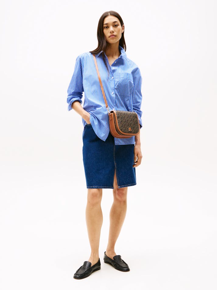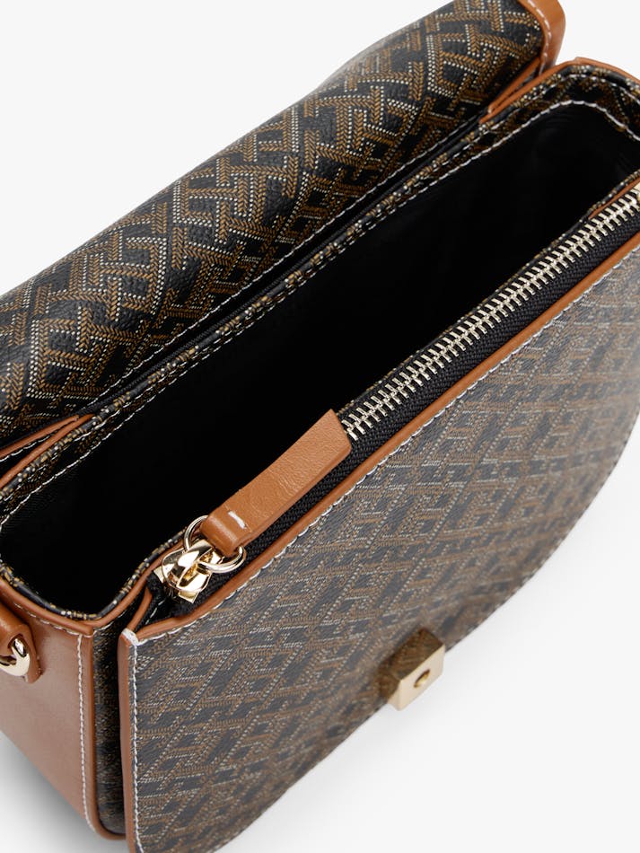 This crossbody saddle bag features an all-over print plus a TH monogram plaque for a tactile branded finish.