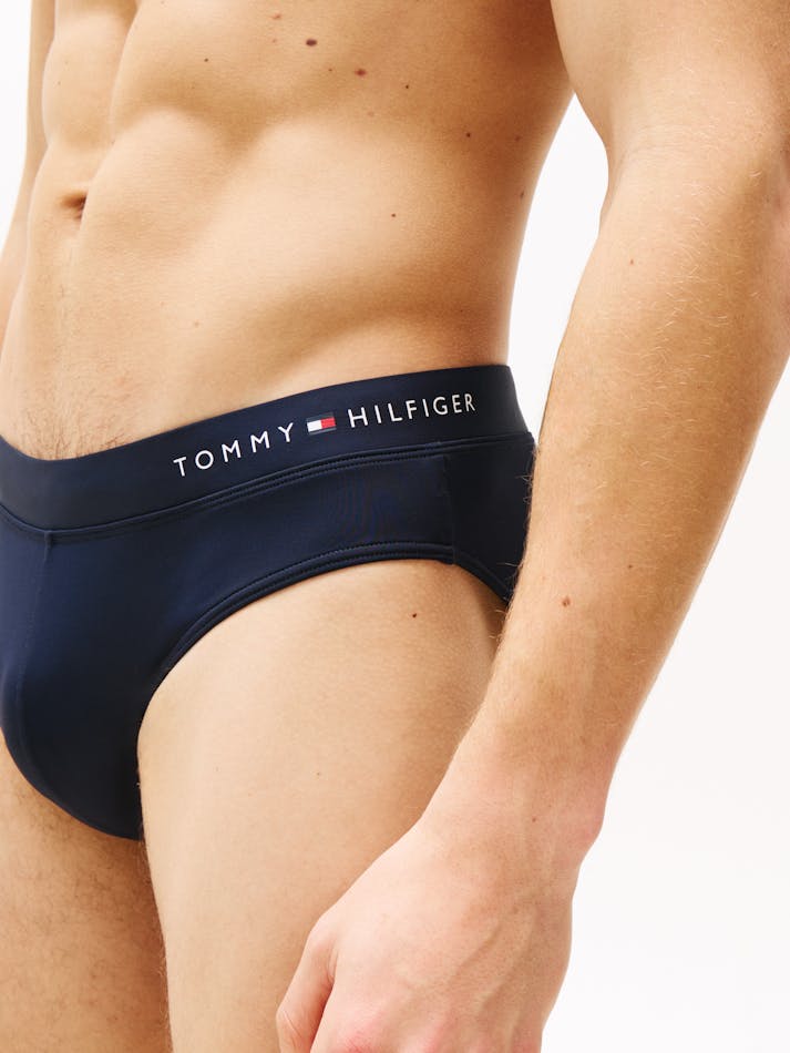Update your poolside look with these briefs, made from comfortable stretch swim fabric and finished with logo detailing on the waistband.