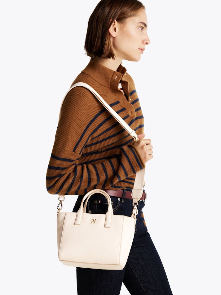 The removable shoulder strap adds versatility to this stylish tote, while the luxurious lining injects a premium feel.