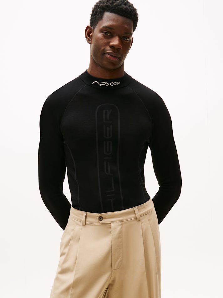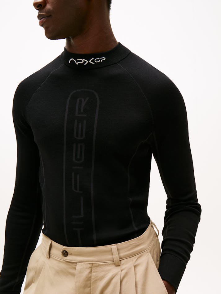 Celebrating the synergy of speed and style in partnership with the F1® The Movie. This skinny fit mock-neck jumper is ideal for layered looks, with the branding on the front adding a distinctive racing-inspired edge.