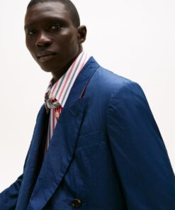 A new American prep wardrobe, presented at New York Fashion Week. This smart blazer features a double-breasted design and classic detailing to deliver an East Coast-inspired Ivy League look.