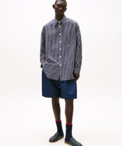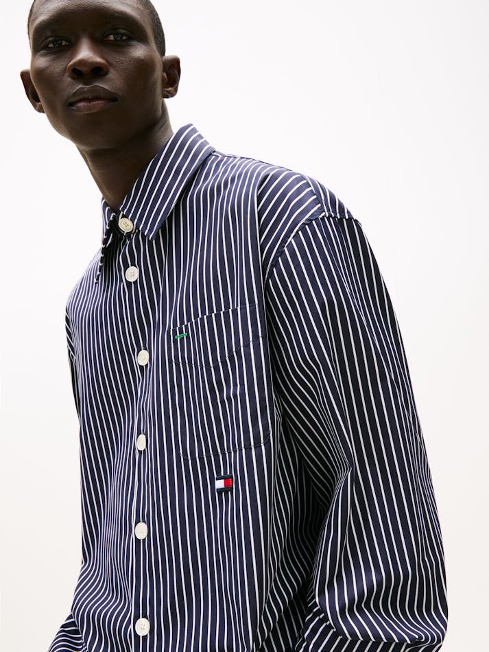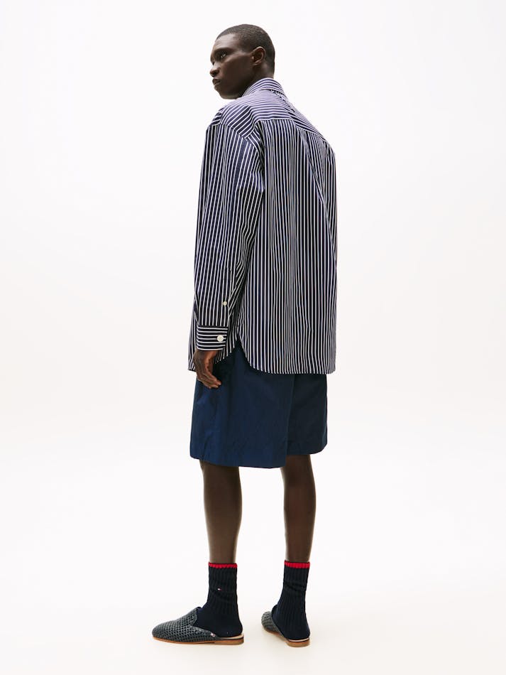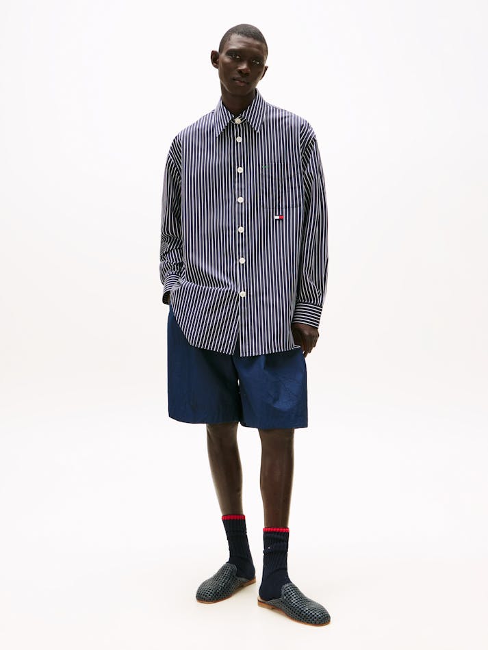 A new American prep wardrobe, presented at New York Fashion Week. Pair this striped oversized shirt with casual shorts as its oversized fit and crisp cotton poplin finish gives a fresh, easy-going feel.