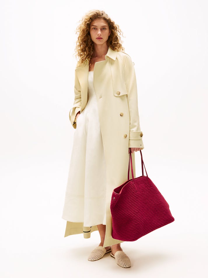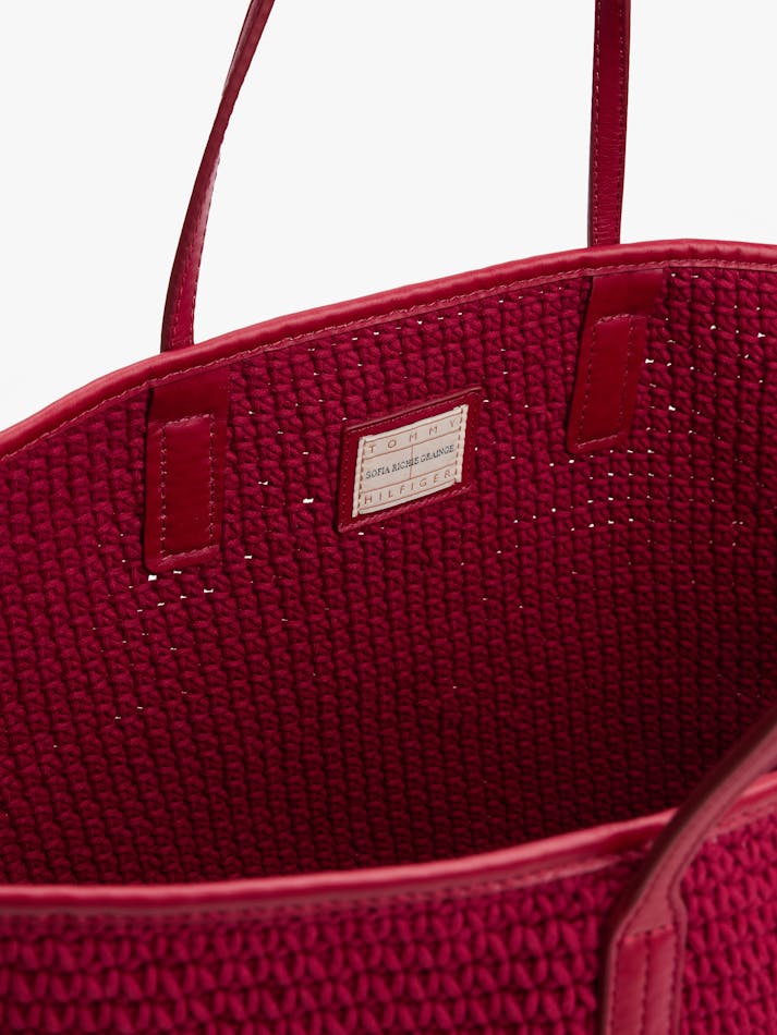 Sofia Richie Grainge lives the everyday twist in Tommy Hilfiger’s most covetable Spring pieces. West Coast style meets East Coast heritage in this sleek beach bag, crafted from leather and detailed with a detachable coin purse.