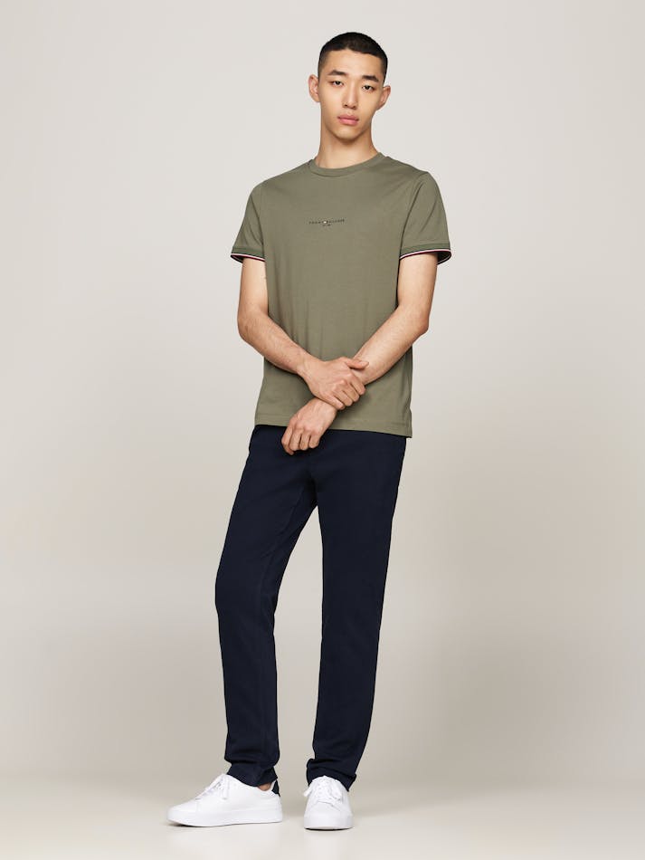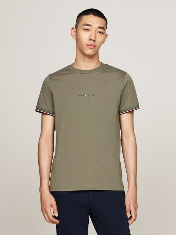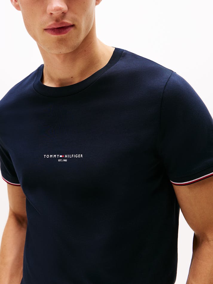 Signature tipping on the cuffs adds a colourful accent to this pure cotton tee with a slim-fitting design.