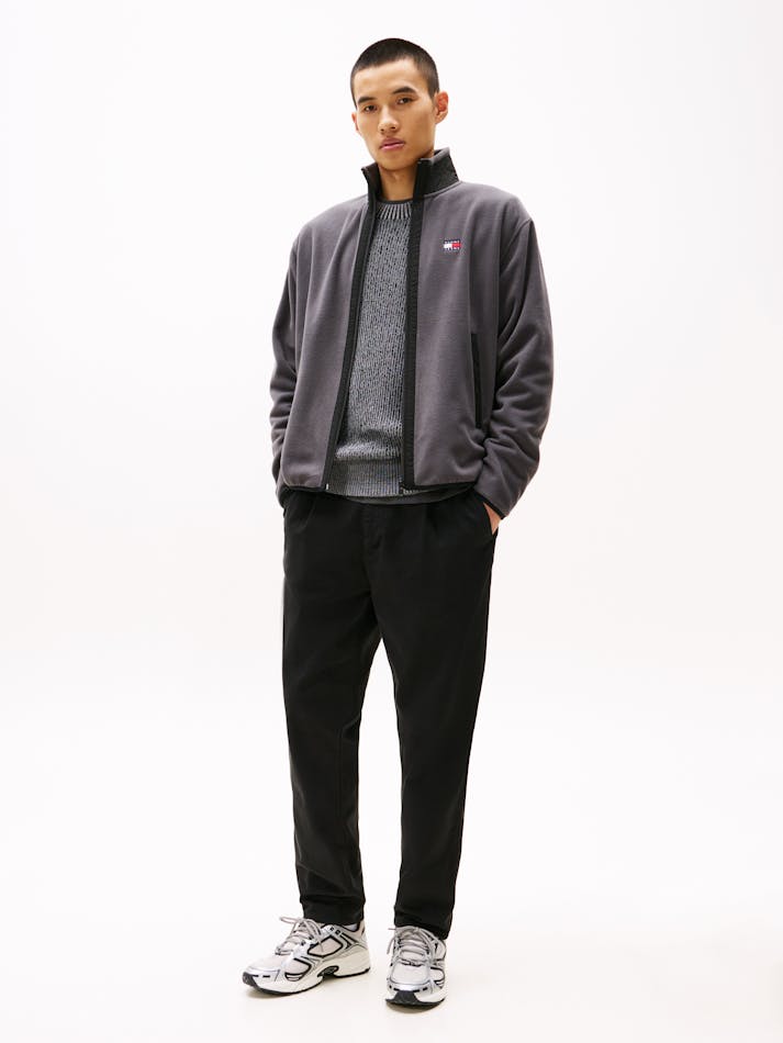 This zip-thru sweatshirt is crafted from polar fleece material and cut to a relaxed fit, creating the perfect layer for colder days.