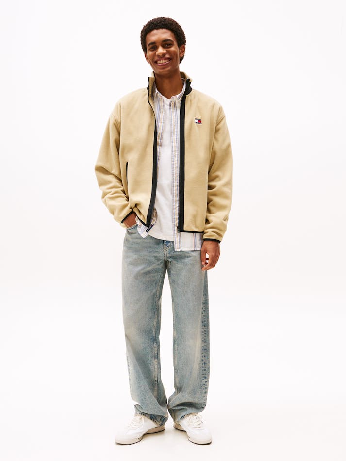 This zip-thru sweatshirt is crafted from polar fleece material and cut to a relaxed fit, creating the perfect layer for colder days.