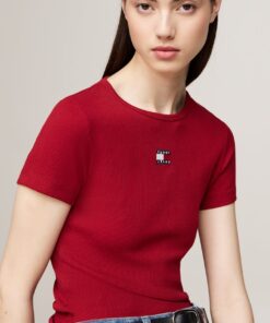 This figure-hugging tee is made from ribbed stretch cotton and showcases the stand-out Tommy badge front and centre.
