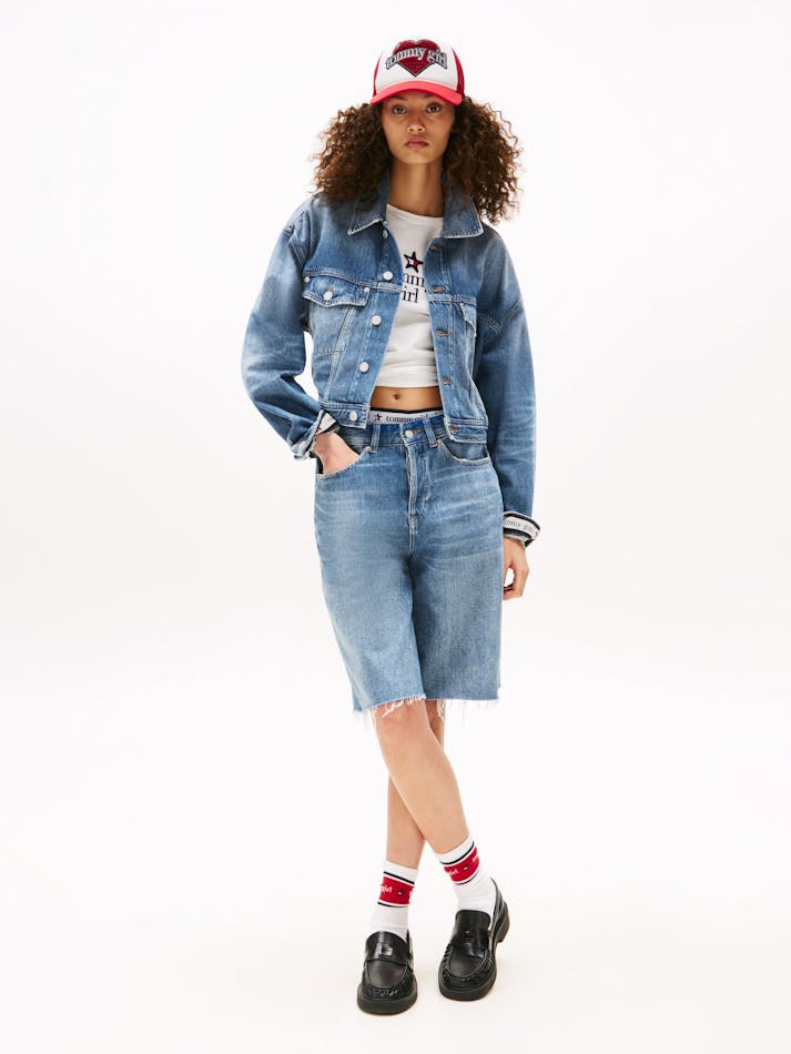TOMMY GIRL BACK LOGO CROPPED OVERSIZED DENIM JACKET