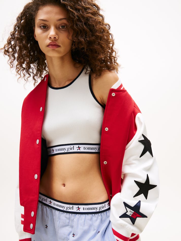 90s spirit. Modern style. Sporty branding and a cropped, extra-slim silhouette infuse this knitted tank top with the distinctive Tommy Girl spirit.