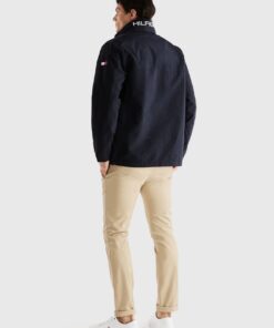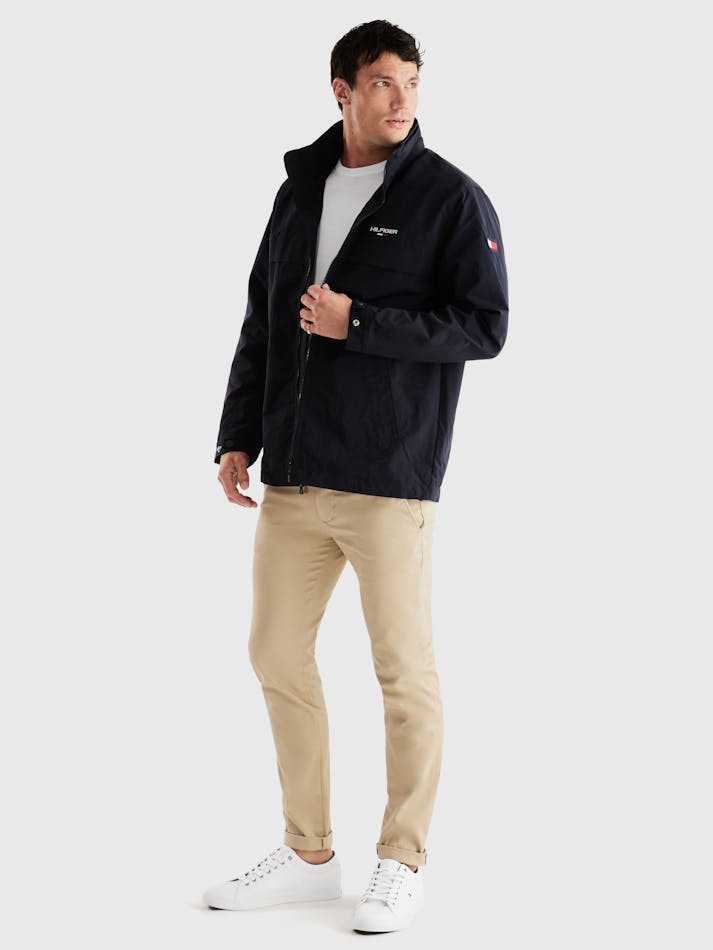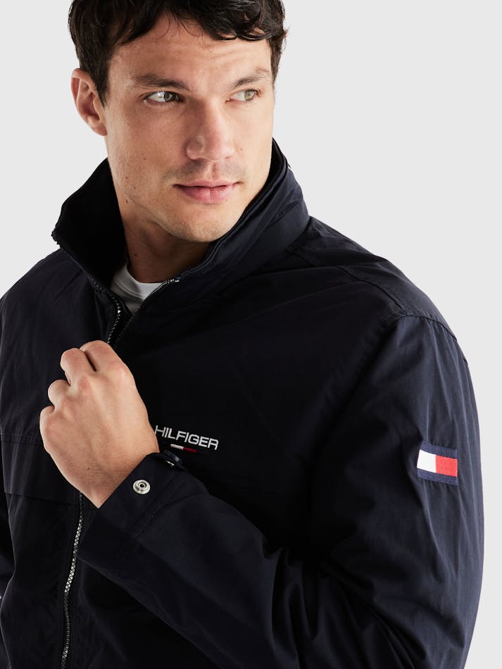 Iconic Tommy, this yacht jacket combines high function with classic styling. Crafted with water resistant fabric, this jacket features a concealed optional hood, multiple pockets and understated Tommy Hilfiger branding.