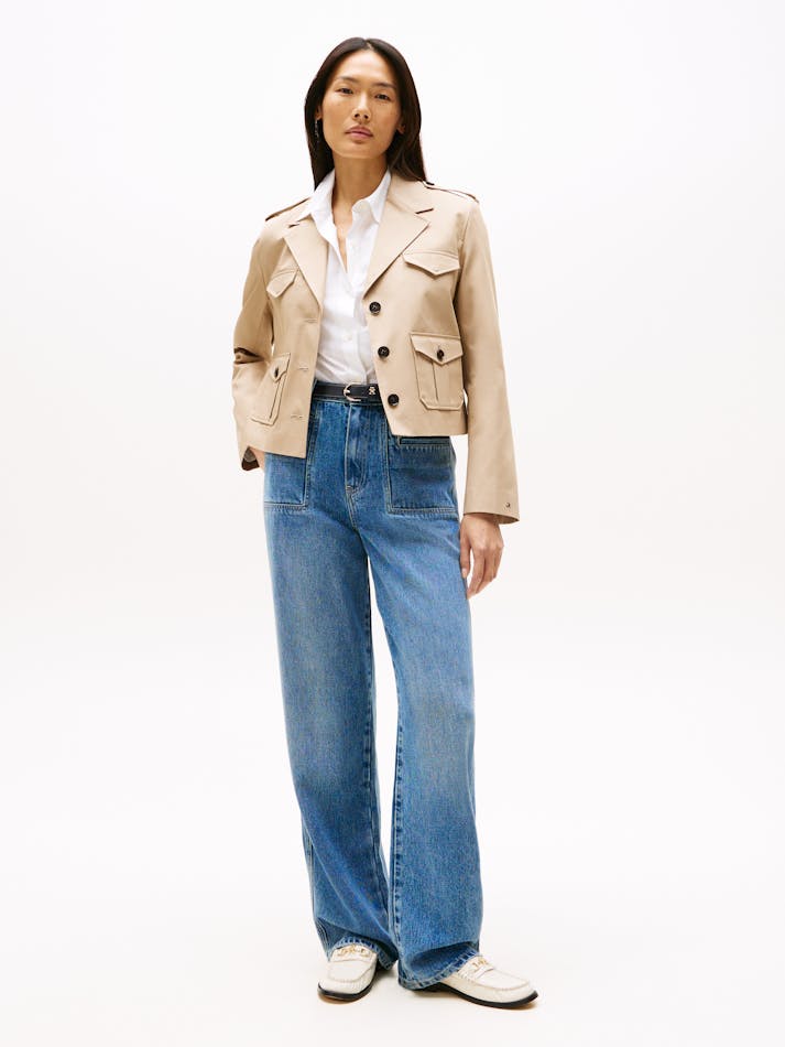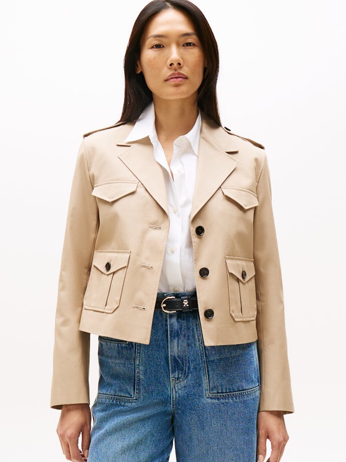 Channel timeless smart style with this single-breasted pure cotton utility jacket, that takes its cues from traditional blazer styling.