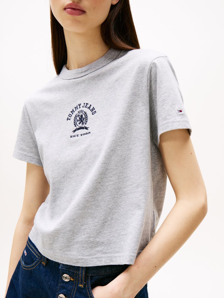 Designed with a classic crew neckline, this pure cotton tee gets its soft, worn-in feel from the garment wash. The Tommy Jeans logo embroidery on the chest adds a touch of heritage style.