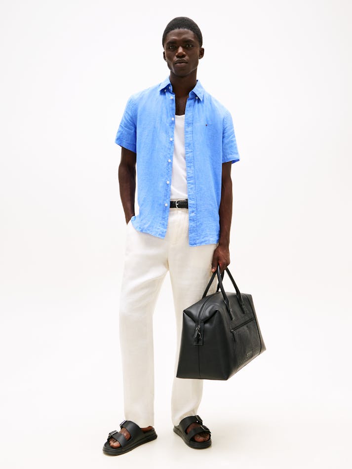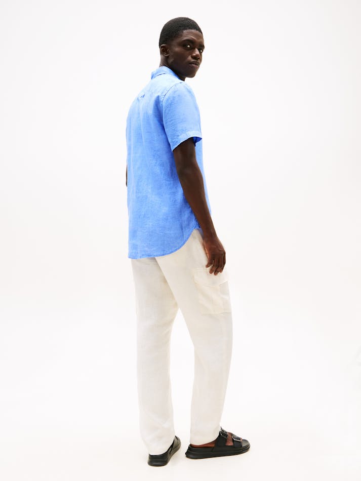 This pure linen shirt is pigment dyed for a lived-in look, and features short sleeves for a summery feel.