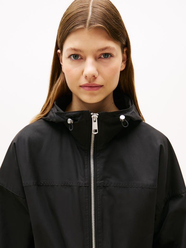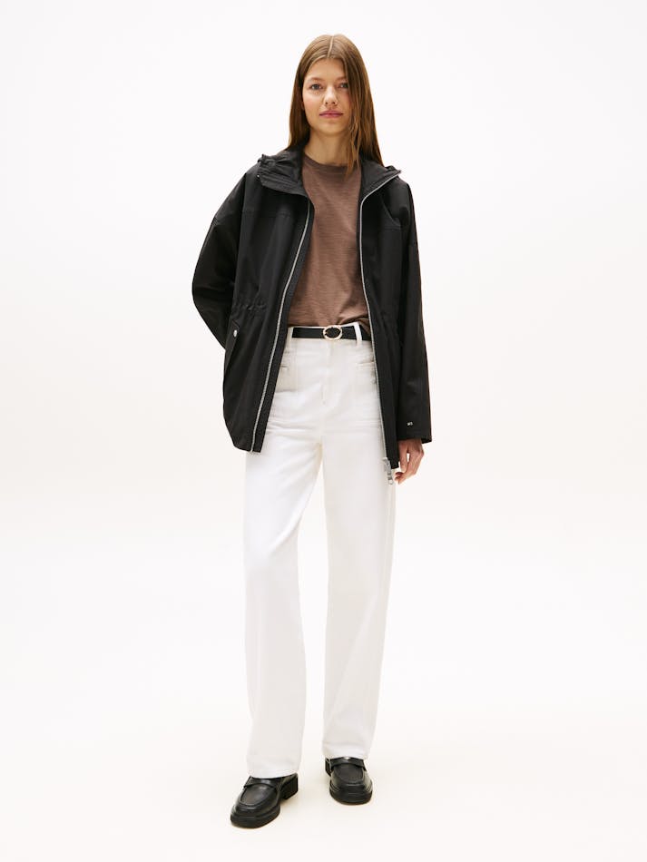 This water-repellent hooded parka is cut to a thigh-skimming length with an adjustable drawstring waist for a flattering silhouette.