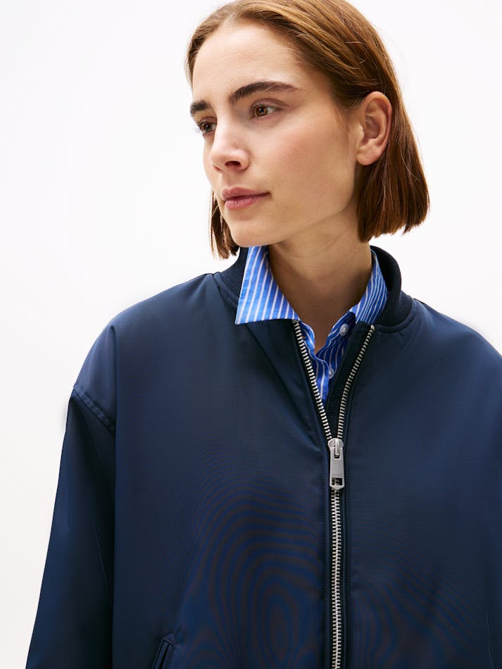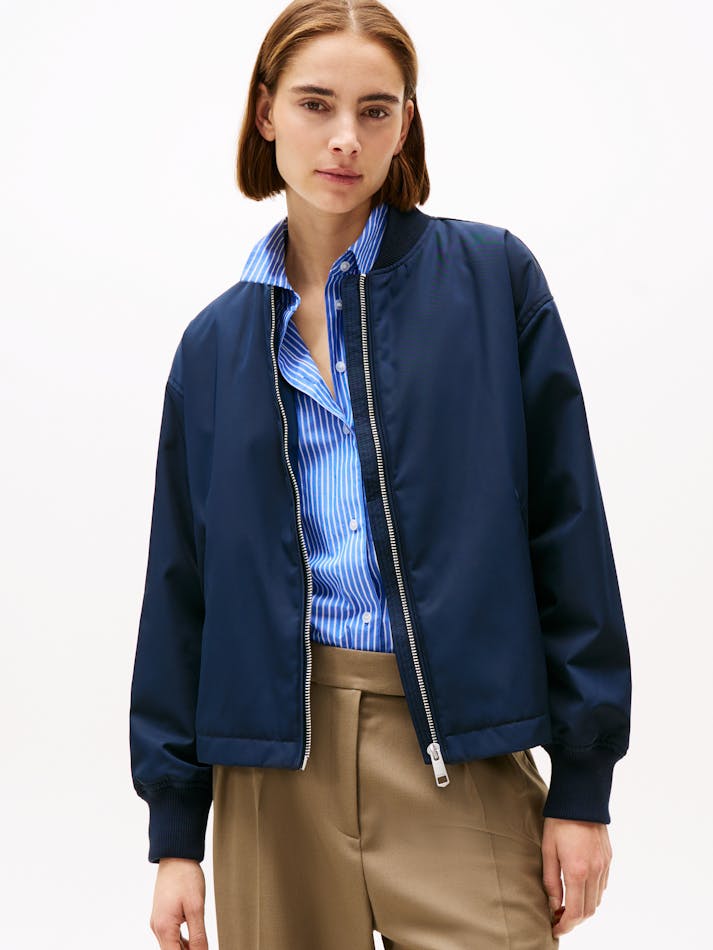 Dash out into the rain with chic pieces from the Water Repellent collection.This bomber jacket rocks a sleek and refined look while benefiting from practical elements, like warm padding and a water-repellent finish.