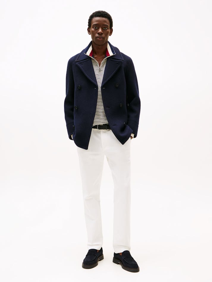 It’s the double-breasted styling with nautical buttons that gives this wool-rich peacoat its timeless look, while branded details add the premium edge.
